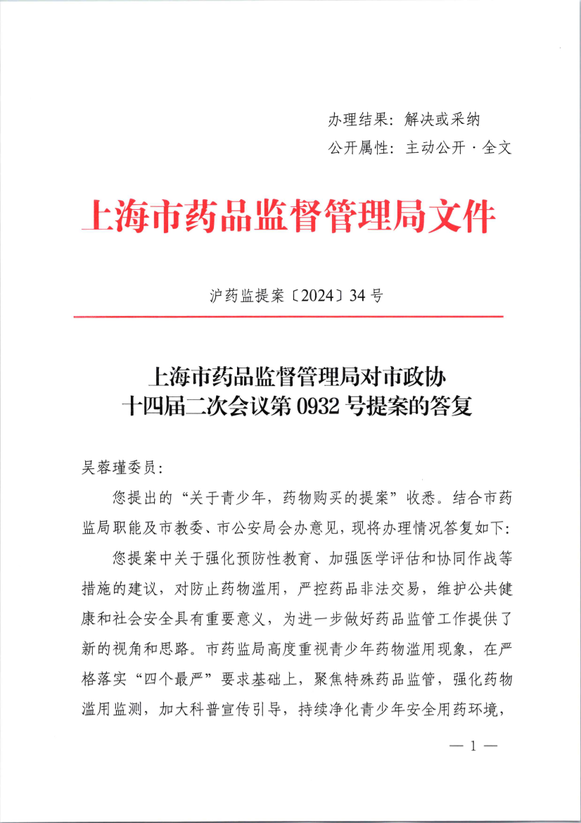 沪药监提案〔2024〕34号