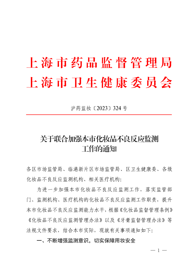 为进一步加强本市化妆品不良反应监测工作,落实监管部门、监测机构、医疗机构的化妆品不良反应监测工作职责,提升本市化妆品不良反应监测能力水平,根据《化妆品监督管理条例》《化妆品不良反应监测管理办法》以及《牙膏监督管理办法》等法规文件要求,结合本市实际,现就有关事项通知如下: